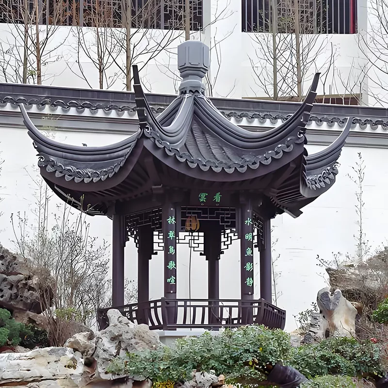 A Shandong Duoping New Material Technology Co., Ltd. a Huizhou-stílusú pavilonok professzionális kutatás-fejlesztése, gyártása és szállítója. A hagyományos Huizhou ősi építészeti mesterségre, a bevésős-csapos szerkezetek gyártására, valamint a kézműves tégla- és fafaragások alapvető technológiáira támaszkodva megismételjük a Huizhou építészet klasszikus formáját, amely „fekete csempékkel, fehér falakkal, felfordított ereszekkel és magas sarkokkal” rendelkezik. Huizhou-stílusú pavilontermékeket készítünk, amelyek ötvözik az ősi építészeti varázst, a stabilitást, a tartósságot és a kulturális textúrát. A Huizhou-stílusú kertek és a kínai stílusú jelenetek alapvető tájépítészeteként pavilonjainkat széles körben használják Huizhou-stílusú udvarokban, ősi festői helyeken, kínai stílusú otthonokban, önkormányzati kertekben és más forgatókönyvekben. A "hagyományos kivitelezés + modern korrózióvédelem" megoldásával a Huizhou kultúrát örököljük. Őszintén várjuk, hogy együtt dolgozhassunk, hogy személyre szabott megoldásokat kínálhassunk különböző Huizhou-stílusú tájprojektekhez.
