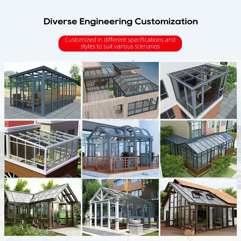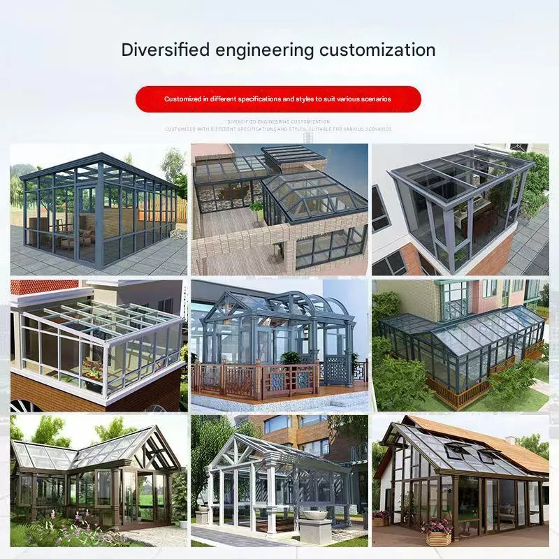 biztosítunk egyablakos napozóterem testreszabási és beszerzési szolgáltatások, amelyek kiterjednek a szerkezet kialakítására, a méretre, a keret színére, az üveg specifikációira és a tartozékokra. A projekt alapú megoldások közé tartozik ingyenes webhelymérés és vizuális előnézet.